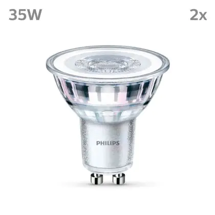 La Confezione Multipack 2x Philips Faretti LED GU10 PAR16 4W 275lm 36D - 840 Bianco Freddo è perfetta per la sostituzione della convenzionale Lampada alogena W GU10 con colore della luce 840 Bianco Freddo. Questa Lampada ha una forma Spot con un diametro di 50mm. I due perni sono distanti tra loro 10mm. Questa lampada funziona con la 220V-230V e quindi non ha bisogno di trasformatori. Passare a LED ti offrirà molti vantaggi!