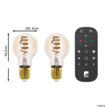 Descrizione Eglo Connect.Z Smart LED Pera E27 Filamento Ambra 9.8W 360lm - 822-865 Regolabile Bianca | Dimmerabile - Sostitutiva 25W