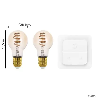 Descrizione Eglo Connect.Z Smart LED Pera E27 Filamento Ambra 9.8W 360lm - 827-865 Regolabile Bianca | Dimmerabile - Sostitutiva 25W