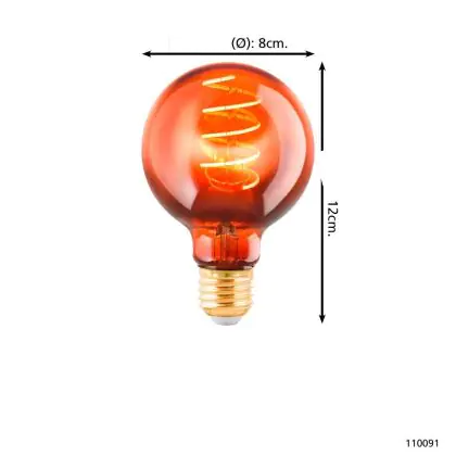Descrizione Eglo LED Globe E27 Filamento Ambra 4W 30lm - 820 Bianco Molto Caldo | Dimmerabile - Sostitutiva 15W