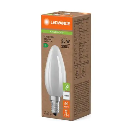 Risparmierai fino al 90% sui costi energetici e di mantenimento, grazie al basso consumo di energia assorbita dai 1.2W e ad una vita media utile di 50000 ore. A confronto: le lampade ad incandescenza tradizionali durano solamente 1000 ore. L’installazione delle lampadine LED è molto semplice: basta svitare le vecchia lampadina E14 a freddo ed avvitare la nuova lampada Ledvance Candela. Questo prodotto possiede la garanzia di qualità offerta da Ledvance e prezzi accessibili che partono da . Potrai utilizzare queste lampade usufruendo della Garanzia Totale Lampadadiretta.it di 5 anni.