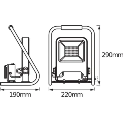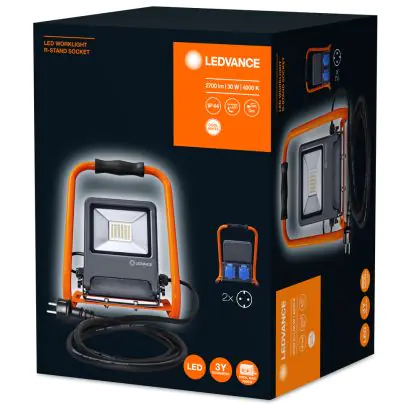 Descrizione Ledvance Proiettore LED Lampada da cantiere Scuro Grigio 30W 2700lm 110D - 840 Bianco Freddo | IP54 - 2 Power Outlets - Simmetrico