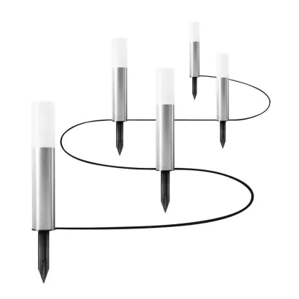 Questo set di mini paletti da giardino Smart+ ZigBee (altezza 22.7 cm) è dotato di una funzione smart per una gestione dell'illuminazione in modalità wireless. La luce della ghirlanda è regolabile attraverso sistema Smart home (gateway e app) o interruttore SMART+. Il controllo tramite app richiede un sistema LIGHTIFY (app e gateway) o altri sistemi di Smart Home compatibili.