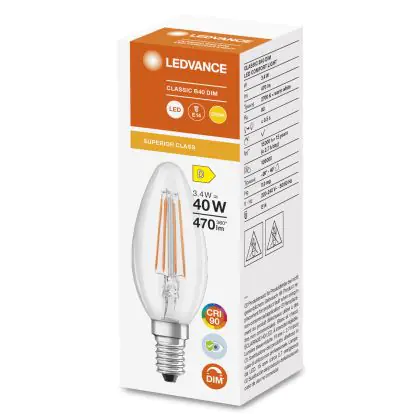 Descrizione Ledvance Superior Classic LED E14 Candela Filamento Chiara 3.4W 470lm - 927 Bianco Molto Caldo | Dimmerabile - Miglior resa cromatica