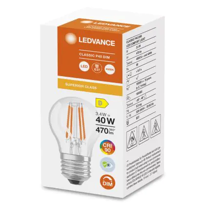 La Ledvance Superior Classic LED E27 Sferica Filamento Chiara 3.4W 470lm - 940 Bianco Freddo | Dimmerabile - Miglior resa cromatica è la perfetta sostituzione per la tua lampada convenzionale 40W con attacco E27 grazie alla sua tecnologia LED. Passare a LED ti offrirà tanti vantaggi!