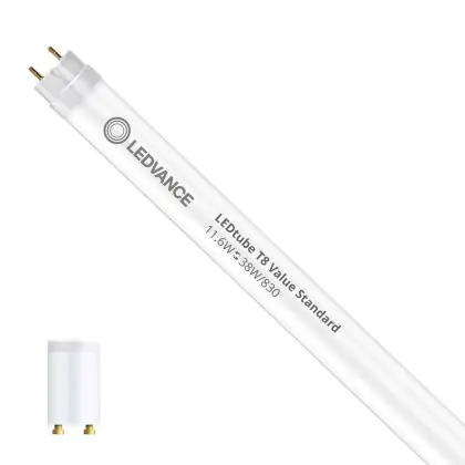 Il Ledvance Tubo LED T8 Value (EM/Mains) Standard Output 11.6W 1260lm - 830 Luce Calda | 105cm - Sostitutiva 38W è l’alternativa perfetta per il tubo fluorescente standard 38W nelle plafoniere con un reattore. Con questo tubo LED hai una garanzia di una vita media utile molto lunga e 5 anni Lampadadiretta.it di totale garanzia. .