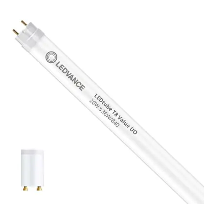 Il Ledvance Tubo LED T8 Value (EM/Mains) Ultra Output 20W 2400lm - 840 Bianco Freddo | 120cm - Sostitutiva 36W è l’alternativa perfetta per il tubo fluorescente standard 36W nelle plafoniere con un reattore. Con questo tubo LED hai una garanzia di una vita media utile molto lunga e 5 anni Lampadadiretta.it di totale garanzia. .