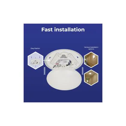 Prima di sostituire un vecchio apparecchio di illuminazione con uno nuovo è sempre consigliabile controllare le dimensioni. Installare questa plafoniera LED è molto facile: basta leggere attentamente le istruzioni e utilizzare il materiale di installazione fornito (viti, tasselli, ecc.). Se hai dubbi sull’installazione consulta un installatore certificato. Per questa lampada offriamo una garanzia di 5 anni.