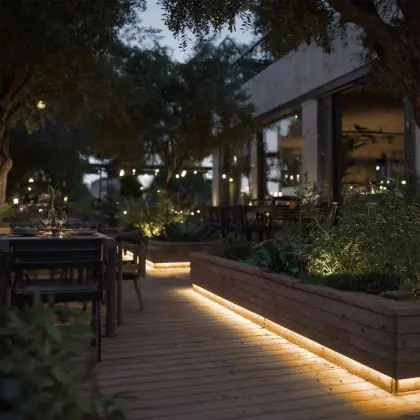 Questa fonte di luce può sempre essere utilizzata per l'illuminazione d'accento. Per usarla invece come illuminazione generale bisogna considerare l’emissione luminosa e l’apertura del fascio di luce. Questa striscia LED è lunga 5000 mm e ha una potenza luminosa di 1200 Lumen. Dividendo il numero di Lumen per la lunghezza della striscia LED troverai la potenza luminosa per metro. Le strisce LED hanno generalmente un fascio di luce ad ampio angolo, che non fa eccezione per questo articolo: °. Clicca qui per scoprire quanti lumen servono in ogni stanza.