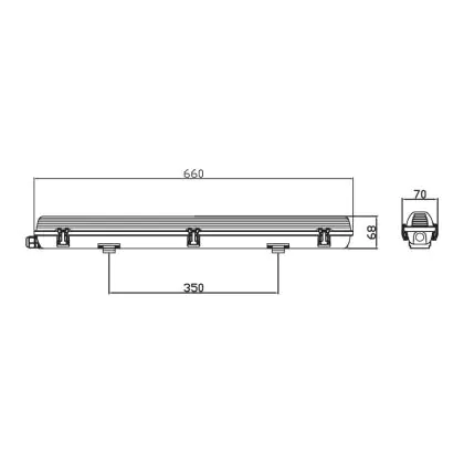 Questo alloggiamento Noxion è compatibile con un tubo LED da 18W, lungo 60cm. Dai un'occhiata qui ai tubi LED più adatti a questo alloggiamento.