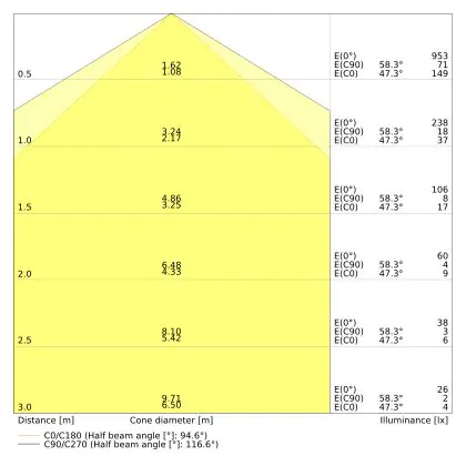 Il codice colore è una combinazione di resa cromatica (CRI) e colore della luce (Kelvin). La prima cifra indica la resa cromatica (1 = resa del colore molto bassa, 9 = massima resa del colore), mentre la seconda e la terza si riferiscono al colore della luce. Esempio: il codice colore 830 indica una buona resa cromatica (8) e luce bianca calda (3000K). |