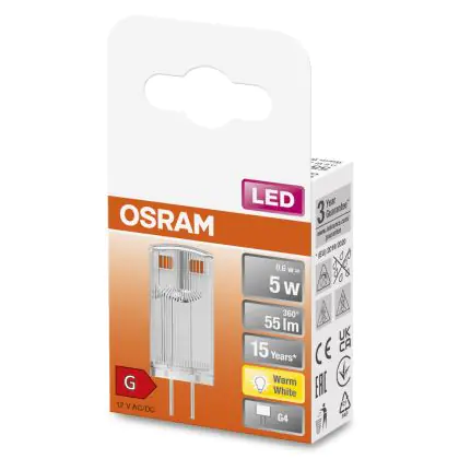 Osram LED Capsule G4 Chiara 0.6W 55lm - 827 Bianco Molto Caldo | Sostitutiva 5W