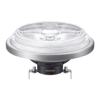 La Philips MASTER LED Faretti G53 AR111 10.8W 600lm 9D - 927 Bianco Molto Caldo | Miglior resa cromatica - Dimmerabile - Sostitutiva 50W è la perfetta sostituzione della classica lamapda alogena50W G53 con colore della luce 927 Bianco Molto Caldo. Questa lampadina ha una forma "Aluminium Reflector" (Spot) con diametro di 111mm e gli attacchi hanno una distanza di 53mm l’uno dall’altro. La lampada G53 è molto più sicura in ambienti umidi rispetto le lampade alogene a 230volt, le lampade G53 funzionano a 12V. Perciò c’è bisogno del trasformatore per avere un voltaggio di 12V. Puoi trovare i trasformatori adatti in "Accessori" su questa pagina prodotti. Di quale trasformatore hai bisogno, dipende dal numero di lampade che vuoi connettere. Il nostro servizio clienti puoi aiutarti con la scelta. Passare a LED ti offrirà tanti vantaggi!