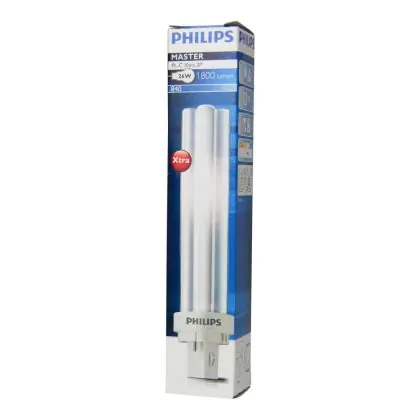 Le Philips PL-C Xtra 18W 830 2P (MASTER) sono lampade fluorescenti compatte veramente efficienti dal punto di vista energetico in quanto consumano poca energia e sono caratterizzate da una vita media incredibilmente lunga: un totale di 16.000 ore, molto di più rispetto alle lampade corrispondenti della linea Philips PL-C a 2 pin (perni) classica. La base di queste lampade fluorescenti a basso consumo é del tipo G24d-2 a 2 pin (perni). La potenza delle medesime é pari a 18W. Quando decidi di sostituire le tue vecchie lampade fluorescenti compatte, é di estrema importanza mantenere medesima base, numero di pin (perni) e stessa potenza: se anche uno solo di questi parametri é differente dalle tue lampade originali, con tutta probabilità non riuscirai a procedere con l'installazione.