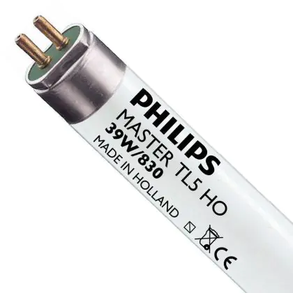 Questo tubo neon Philips TL5 HO 39W con attacco G5 emette un flusso luminoso potente. È indicato per un’installazione su soffitti alti in negozi, scuole e fabbriche.