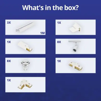 Descrizione Set completo 1-Fase Rail L 1 x 2 Metro Bianca | incl. 8x Faretti + GU10 2700K 3W Dimmerabile + Tappo Di Chiusura, Connettore di Alimentazione e L -Connettore